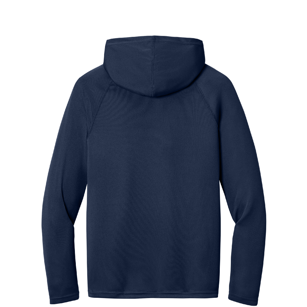 A top choice for sports and exercise, this hooded long sleeve tee combines a comfortable fit with performance features such as moisture wicking and sun protection.